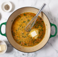 Sauces are another secret to making your food taste more like a restaurant, but you don’t need to memorize classic French and Italian mother sauces to pull this off. A basic pan sauce is not only delicious, it’s helpful to clean-up!Pan sauces start with deglazing, which really just means adding some flavorful liquid to a hot and dirty pan (like the one you just used to sear, above). Adding liquid releases the flavorful cooked-on bits of food (this makes cleaning the pan easier) and then you have pan juices to build a sauce from. From here you can add a bit of minced shallot or some fresh herbs for flavor. Then, off the heat, add fridge-cold butter, swirling and swirling the butter into the liquid until it thickens. Pour this pan sauce over the steak you just seared and you’ve got a restaurant-quality dish—and a nearly-clean pan.