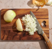 Basic knife skills are essential to faster, easier cooking because when your onions (or carrots or chicken cutlets) are all about the same size they cook more evenly. An onion is almost always used as the example of proper knife skills because it is also the most basic aromatic for everything from everyday chili to holiday roasts. But the fundamentals of cutting an onion apply to other produce as well: Remove the stem and peel, cut into manageable pieces with a flat steady side and then cut it into smaller pieces methodically.Cut basic white, yellow, and red onions like this: Trim off the top of the onion—leave the root in place to make cutting easier. Remove the peel. Halve the onion lengthwise. Then, working with one half at a time, position the onion cut side down with the cut top parallel to the knife. With your knife parallel to the cutting board, make ¼ inch slices of the onion working from the bottom to the top, making wide planks of onion, and stopping before you hit the root. Then hold your knife as you normally would and start cutting downward perpendicular to the cut top. Finally, turn the onion 90 degrees and slice through all those slices to get a finely chopped onion.